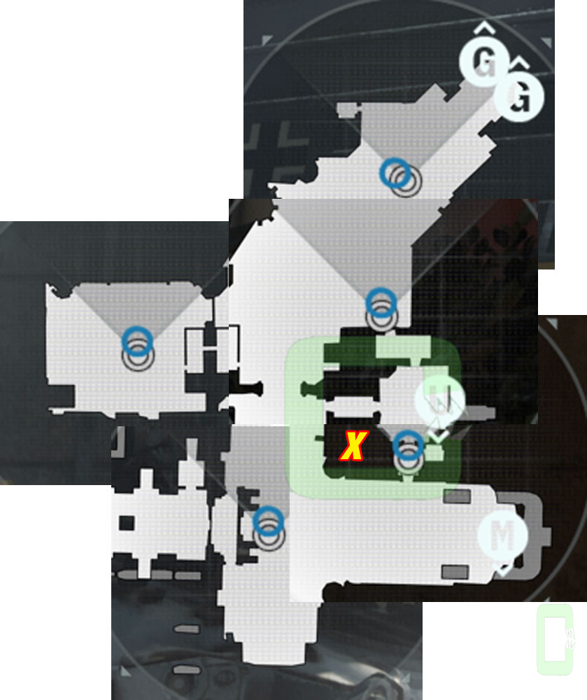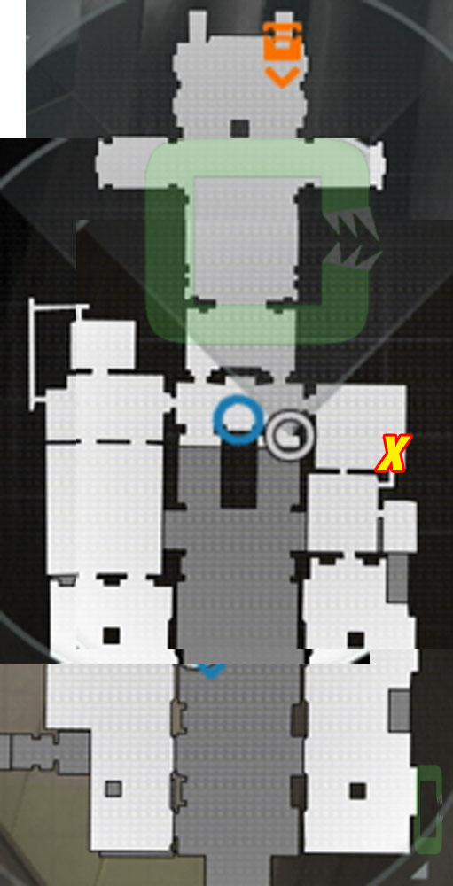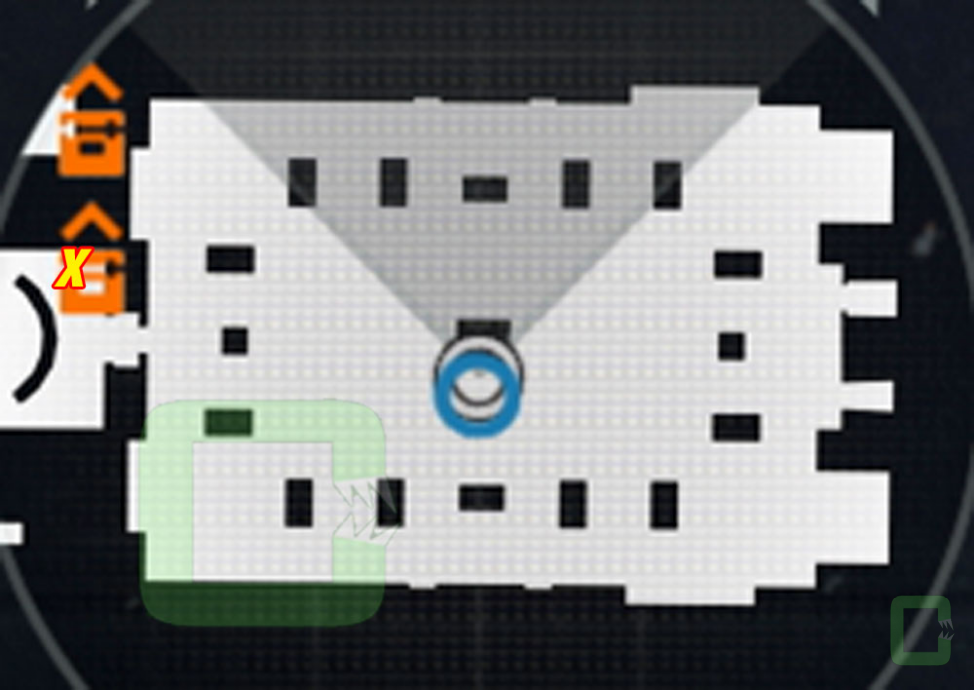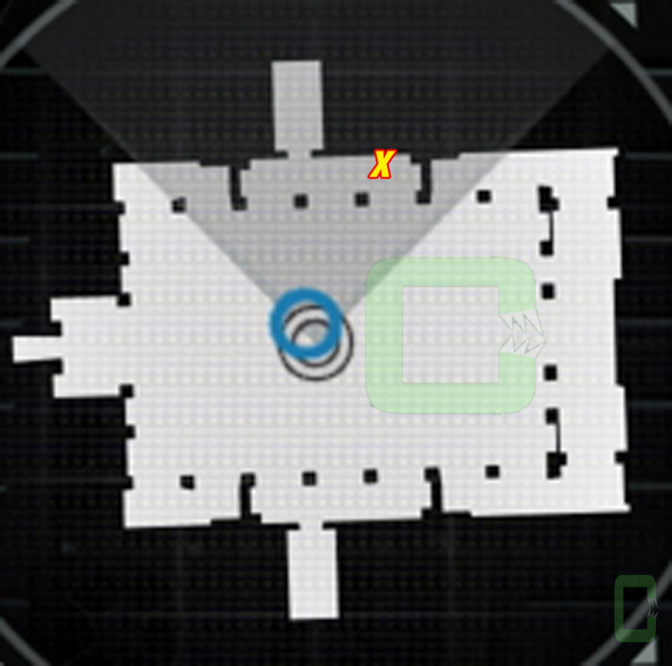In the center of the map, there is a computer terminal. Next to it is a shelf with lots of red lamps. It's hidden in there.