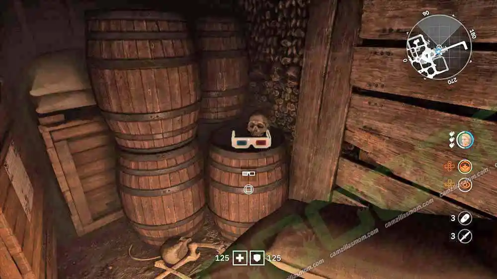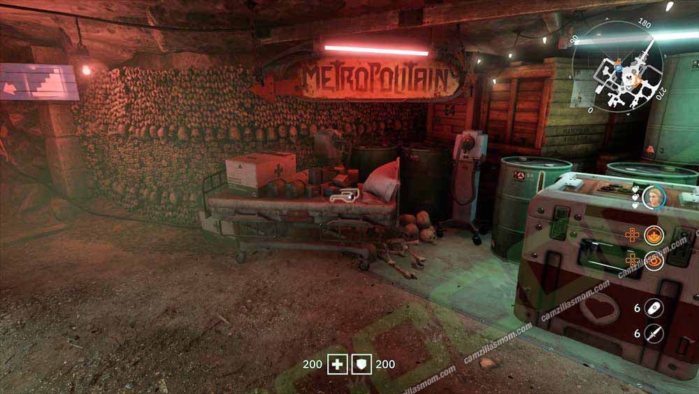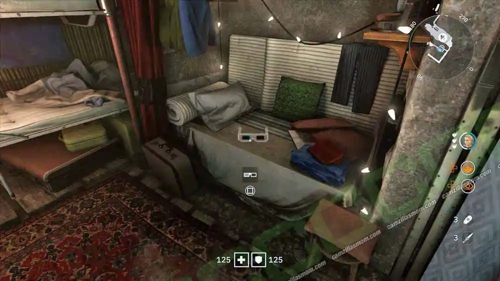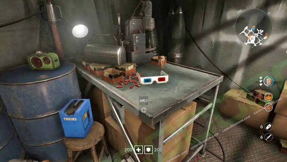 The 3-D glasses are located inside a shack near the northern Detention Area 4 Metro. To reach it, head down into the Underground Sewers (marked “U” on the mini-map). Once inside, follow the yellow pipes until you reach the underground train station. Move all the way to the front of the derailed train, then turn right. You’ll see an exit marked “U” on the mini-map—this leads directly to the shack.