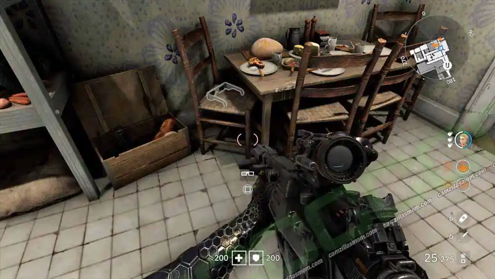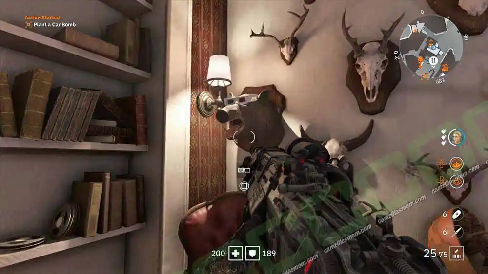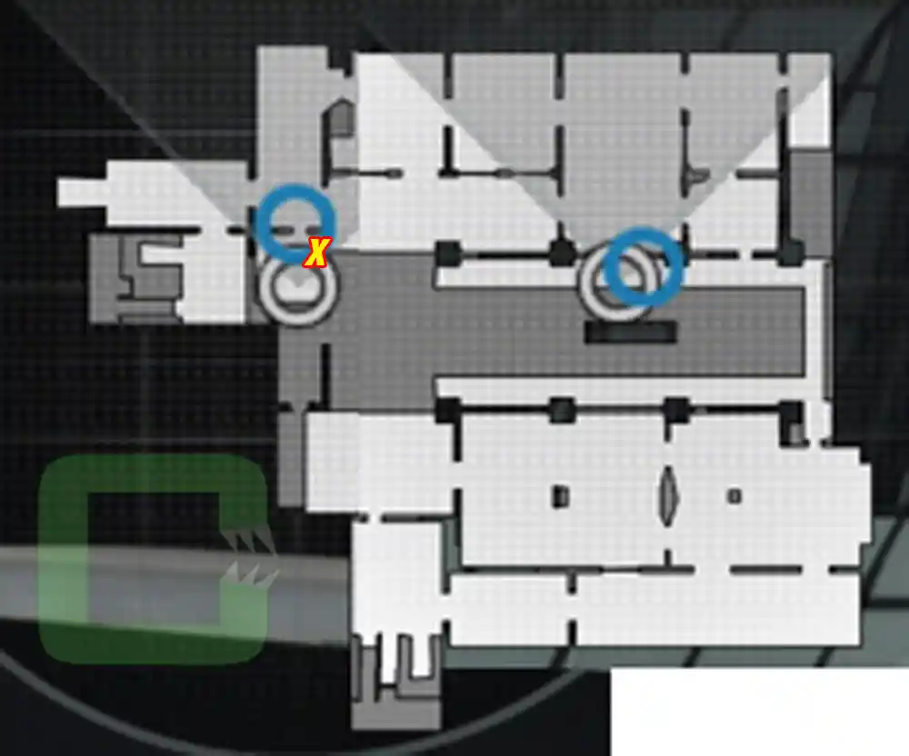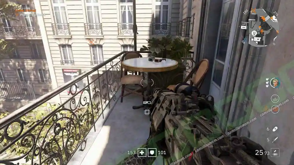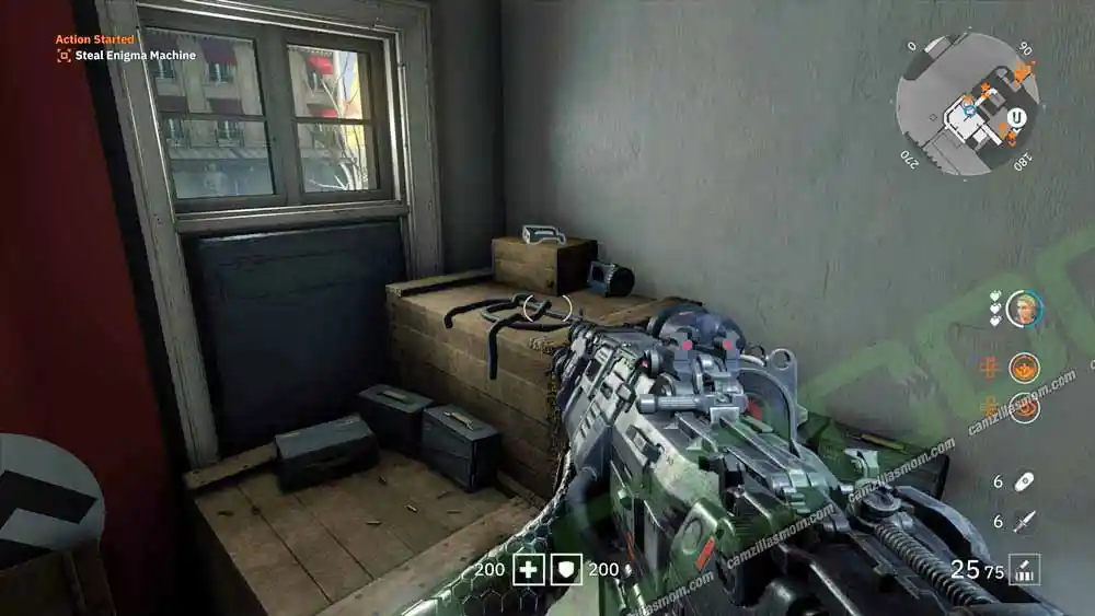 At the first Checkpoint, there is a mountable turret and a gate that you can open with a red button. Climb up the ladder there to get on top of the checkpoint hut. There, you can climb through the window into the building, where you find the Glasses on one of the animal heads.