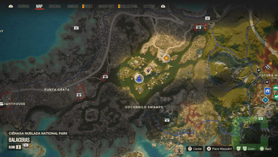 It's on a table at a small building near the map pin.