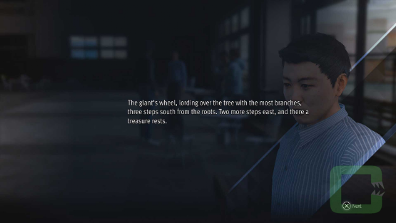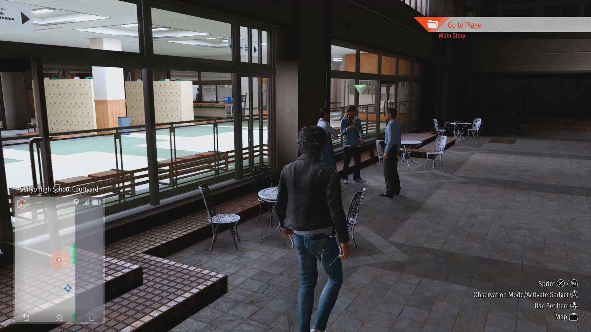 Go to the indicated spot in the courtyard and enter Observation Mode.